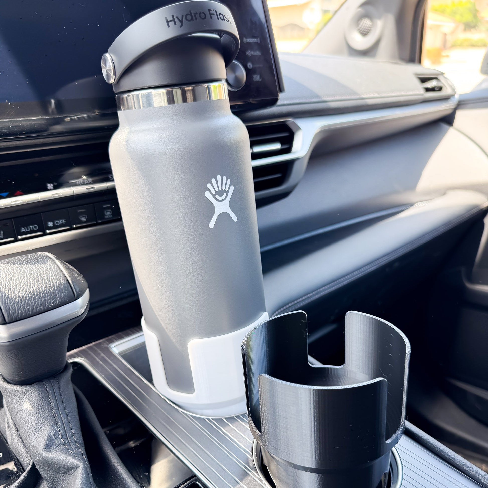 Tired of your oversized water bottles tipping over while you drive? This universal cup holder adapter is designed to securely hold your 32oz or 40oz Hydroflask and many other tumblers—without the wobble.